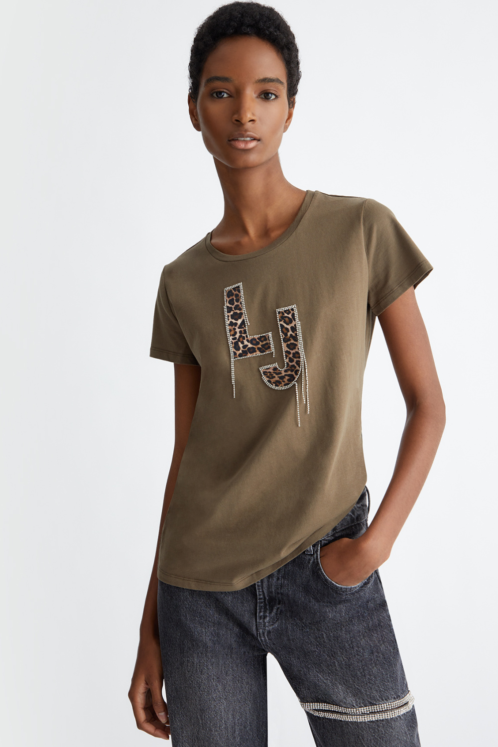 Leopard logo print with gemstones